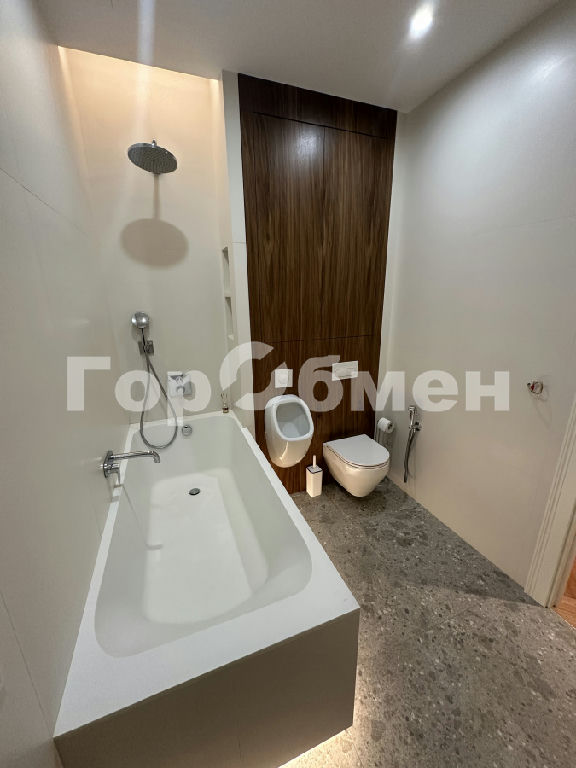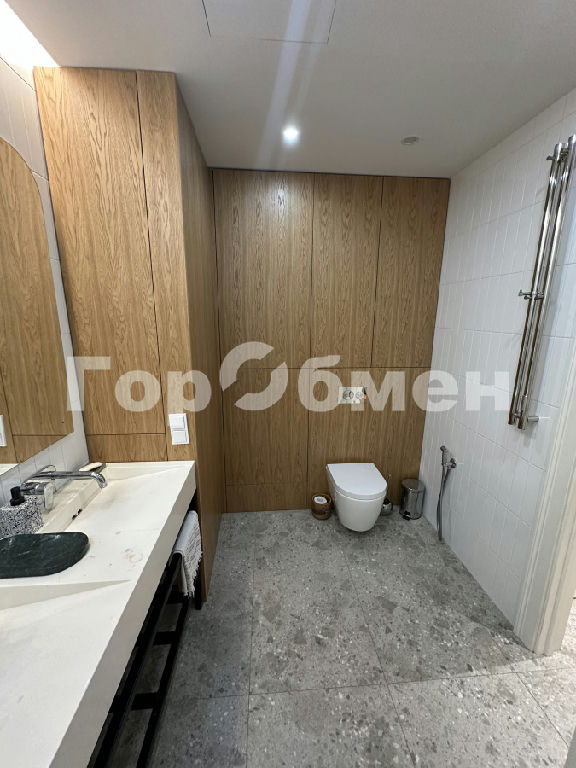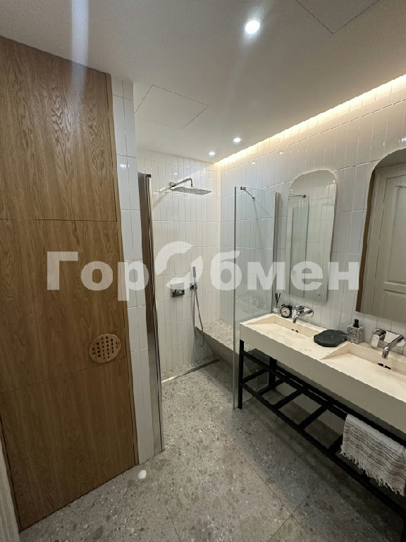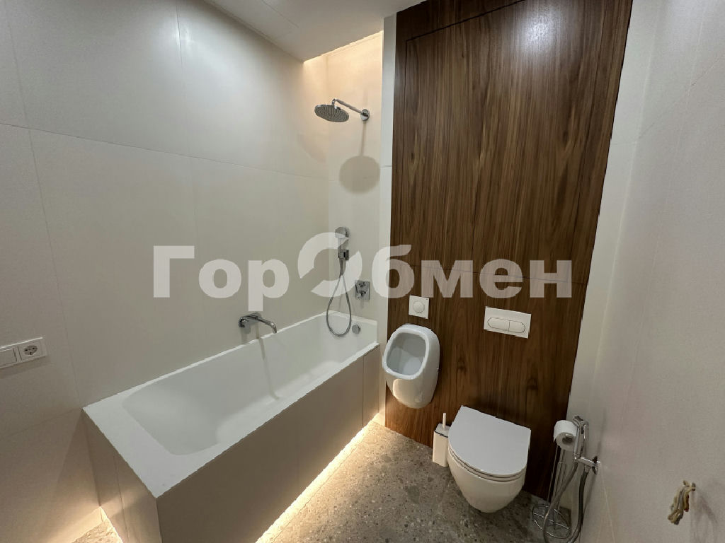 Санузлы оснащены влагостойкой встроенной мебелью из шпона, сантехникой hansgrohe, душевыми системами с термостатами, инсталляциями Viega и ванной из литьевого мрамора, предусмотрена ночная подсветка. В одном из санузлов установлен писсуар. Система водоподготовки включает фильтрацию воды, водонагреватель, защиту от протечек.