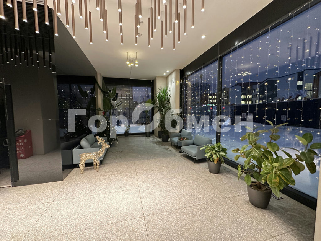 В интерьере преобладают спокойные оттенки и натуральные материалы: шпон, керамогранит, камень и дерево, что создает атмосферу уюта и спокойствия.